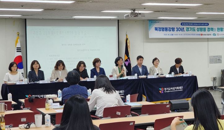 이날 행사에는 김혜순 경기도여성가족재단 대표이사, 황윤정 유엔여성기구 지식·파트너십센터 소장, 정영애 전 여성가족부 장관을 비롯해 학계, 연구기관, 시민사회 전문가, 도내 공무원과 도민 등 100여 명이 함께해 성황을 이뤘다