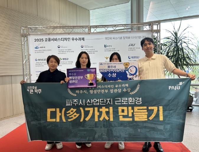 (뉴스폼) 파주시는 행정안전부가 주관하고 한국디자인진흥원이 주최한 ‘2025 공공서비스디자인 성과공유대회’에서 3년 연속 우수과제로 선정되어 행정안전부 장관상을 수상했다고 밝혔다.