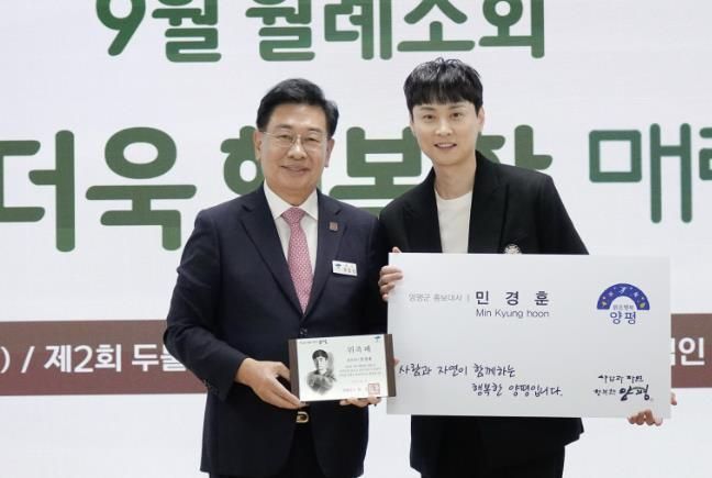 (뉴스폼) 양평군은 3일 군청 대회의실에서 열린 9월 월례조회에서 가수 민경훈을 양평군 홍보대사로 위촉했다.