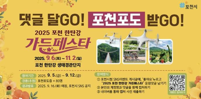 한편, ‘포천 한탄강 가든페스타’는 지난해 30만 명이 방문한 포천시의 대표 축제다. 올해는 10월 9일부터 12일까지 ‘2025 한탄강 세계드론제전’도 개최될 예정이다.
