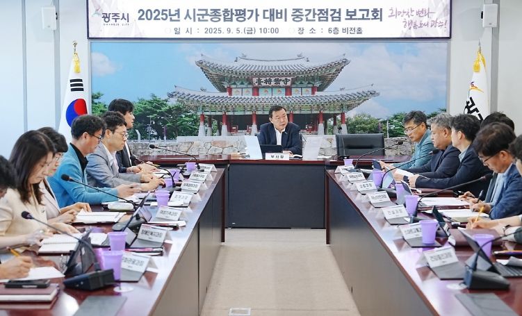 (뉴스폼) 광주시는 5일 시청 6층 비전홀에서 김충범 부시장 주재로 2025년 시군종합평가 실적 향상을 위한 중간점검 보고회를 열었다.