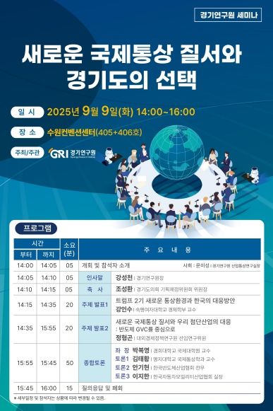 경기연구원 관계자는 “본 세미나가 변화하는 국제통상 질서에 대해 경기도 차원의 전략적 대응 방향을 제시하고 정책 대안을 모색하는 자리가 되기를 바란다”고 말했다.