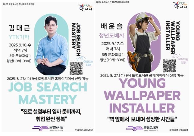 (뉴스폼) 구리시 토평도서관은 오는 9월 10일과 17일, 총 2회에 걸쳐 청년 대상 맞춤형 특화프로그램을 운영한다.