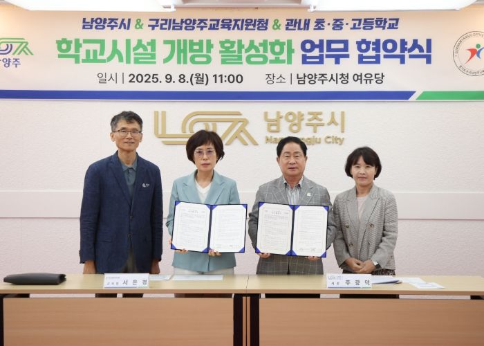 (뉴스폼) 남양주시는 8일 시청 여유당에서 경기도구리남양주교육지원청 및 관내 초·중·고등학교와 함께 ‘학교시설 개방 활성화를 위한 업무협약’을 체결했다.