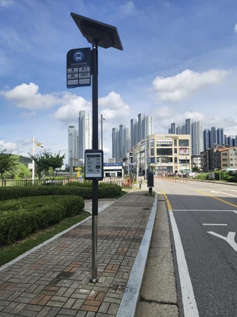 버스정보안내기(BIT, Bus Information Terminal)는 버스정류장에 실시간으로 버스 도착 예정 시간을 알려주는 단말기다. 이번에 설치된 결합형 BIT는 태양광 에너지와 저전력 전자종이(e-paper)를 활용해 전기 인입이 어려운 지역에서도 안정적으로 운영된다. 버스 표지판은 자석 방식으로 부착돼 노선 변경 시 손쉽게 교체할 수 있다.
