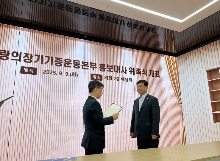 (뉴스폼) 경기도의회 교육기획위원회 소속 이택수 도의원(국민의힘, 고양8)이 9일 ‘장기기증의 날’을 맞아 재단법인 사랑의 장기기증운동본부 홍보대사로 위촉됐다.
