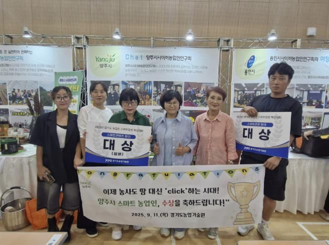 (뉴스폼) 양주시는 지난 11일 경기도농업기술원에서 열린 ‘2025년 경기도 농업인 스마트경영 혁신대회’에 참가한 양주시사이버농업인연구회가 스마트콘텐츠(고령) 분야와 스마트경영(개인) 분야에서 각각 대상을 수상했다고 밝혔다.