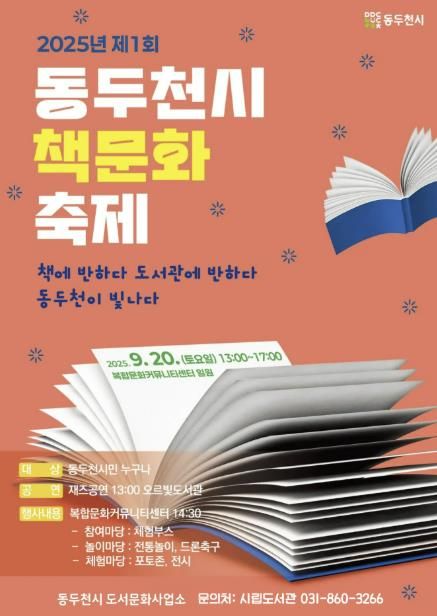 (뉴스폼) 동두천시는 지역 주민의 독서문화 확산과 독서 생활화를 위해 9월 20일 복합문화커뮤니티센터에서 ‘제1회 동두천시 책문화축제’를 개최한다고 밝혔다.