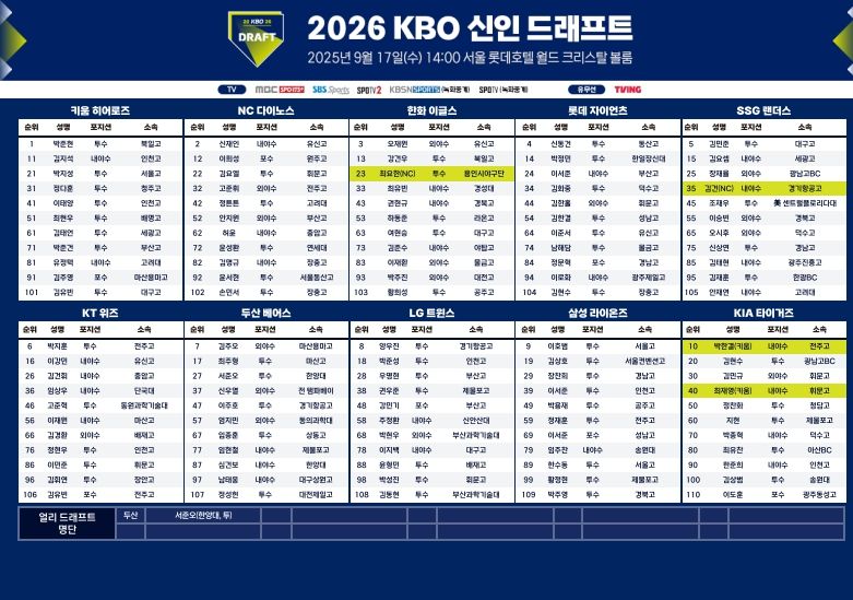 고교 92 / 대학 16 (얼리드래프트 1) / 기타 2