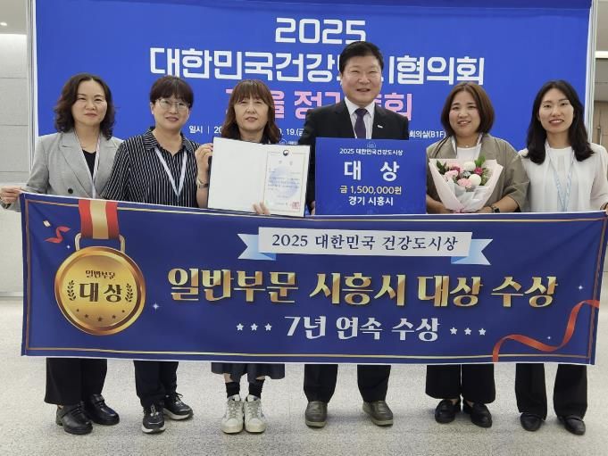 (뉴스폼) 시흥시는 지난 9월 18일 안동국제컨벤션센터에서 열린 2025 대한민국건강도시협의회 가을 정기총회에서 ‘2025 대한민국건강도시상’ 일반 부문 대상을 받았다. 이로써 시흥시는 2019년부터 7년 연속 수상의 성과를 이어가게 됐다.