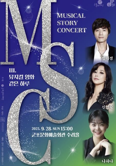 (뉴스폼) (재)군포문화재단은 오는 9월 28일 오후 3시 군포문화예술회관 수리홀에서 기획공연 “뮤지컬 스토리 콘서트 Ⅲ. 뮤지컬 영화 같은 하루”를 선보인다.
