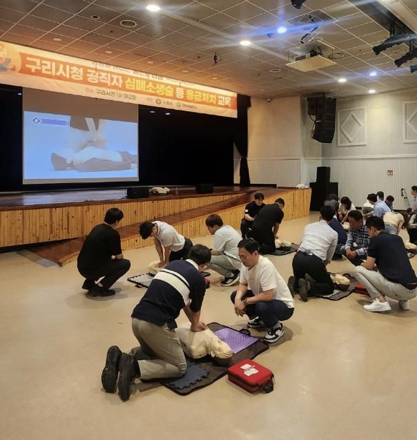 (뉴스폼) 구리시는 9월 22일부터 23일까지 이틀간 청사 대강당에서 공직자 100여 명을 대상으로 '심폐소생술 등 응급처치 교육'을 진행했다.