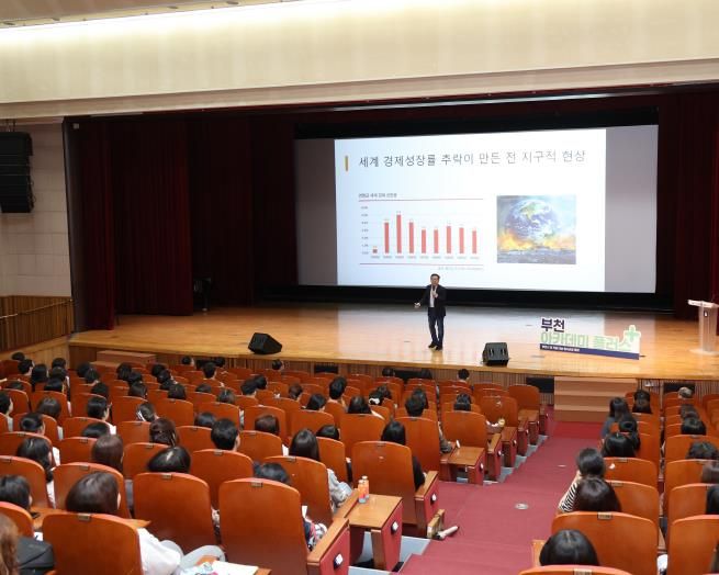 (뉴스폼) 부천시는 9월 24일 부천시청 어울마당에서 전 직원을 대상으로 ‘부천 아카데미 플러스(+)’ 두 번째 강연을 열었다. 이번 강연은 지식경제연구소 박종훈 소장을 초청해 ‘2026, 세계 경제 전망을 통한 자산시장의 변화’를 주제로 진행됐다.