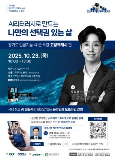 (뉴스폼) 고양특례시는 경기도와 경기과학원이 주최하는 ‘2025년 인공지능 시군특강(고양특례시편)’을 10월 23일 마두도서관에서 진행한다고 밝혔다.