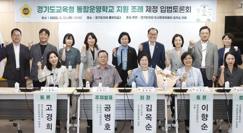 (뉴스폼) 경기도의회 도시환경위원회 김옥순 의원(더불어민주당, 비례)은 25일 경기도의회 중회의실에서 ‘경기도교육청 통합운영학교 지원 조례’ 제정 입법토론회를 개최했다.