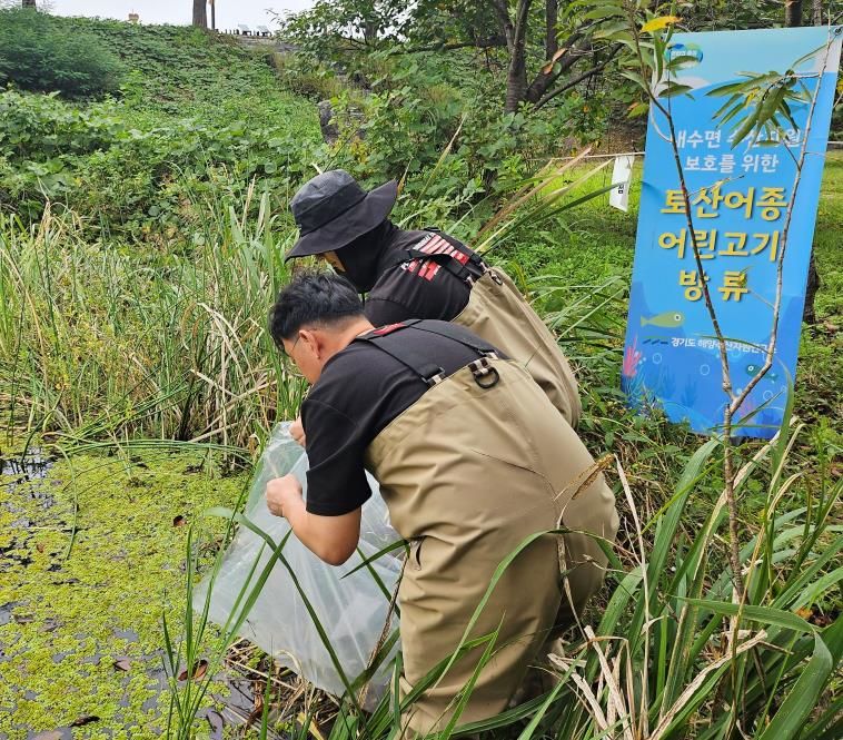 (뉴스폼) 경기도해양수산자원연구소가 토종 민물고기 종 보존과 하천 생태계 복원을 위해 경기도 보호 어종인 버들붕어 치어 1천 마리를 9월 30일 광주시 경안천습지생태공원에 방류했다.