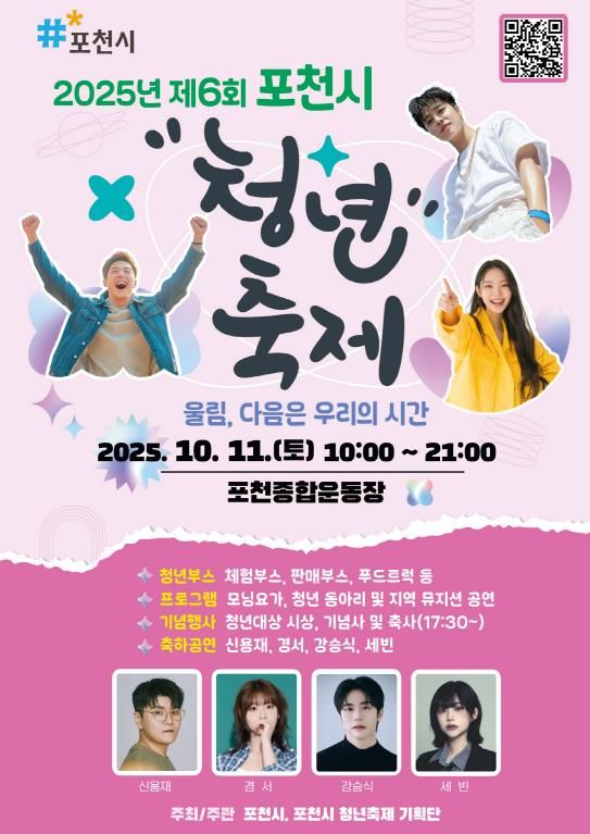 (뉴스폼) 포천시는 오는 10월 11일 포천종합운동장에서 ‘2025년 제6회 포천시 청년축제’를 개최한다.