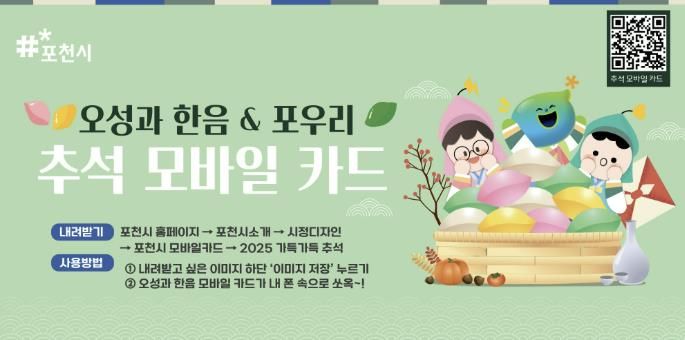 (뉴스폼) 포천시는 지난 1일 민족 최대 명절 추석을 맞아 시민들이 감사와 따뜻한 마음을 손쉽게 전할 수 있도록 ‘추석 모바일 카드’를 무료 배포했다.