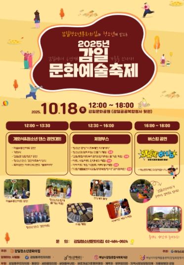 (뉴스폼) 하남시 감일청소년문화의집은 오는 10월 18일 오후 12시부터 18시까지 감일문화공원(감일공공복합청사 뒷편)에서 '제2회 감일문화예술축제'를 개최한다.