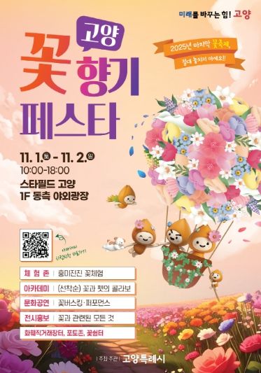 (뉴스폼) 고양특례시는 오는 11월 1일과 11월 2일, 오전 10시부터 오후 6시까지, 스타필드 고양 1층 동측 야외광장에서 2025년 마지막 꽃축제인 ‘고양 꽃향기 페스타’를 개최한다고 밝혔다.