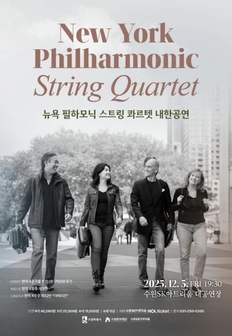 (뉴스폼) 수원문화재단은 오는 12월 5일 금요일 오후 7시 30분, 수원SK아트리움 대공연장에서 ‘뉴욕 필하모닉 스트링 콰르텟 내한공연’을 개최한다.