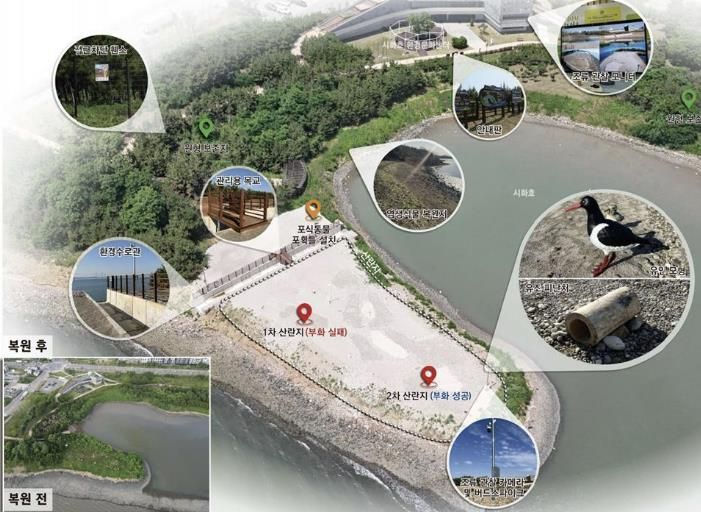 시흥시가 철새도래지 서식처 조성사업에 2년 연속 선정돼 추진한 시화MTV ‘검은머리물떼새 서식지 조성사업’은 2025년 제25회 자연환경대상 기후에너지환경부장관상을 수상하며 그 생태복원 역량을 인정받았다. 시는 (사)시화호지속가능파트너십과 협력해 이번 사례를 생태ㆍ환경교육 프로그램과 연계 발전시켜 나가고 있다.