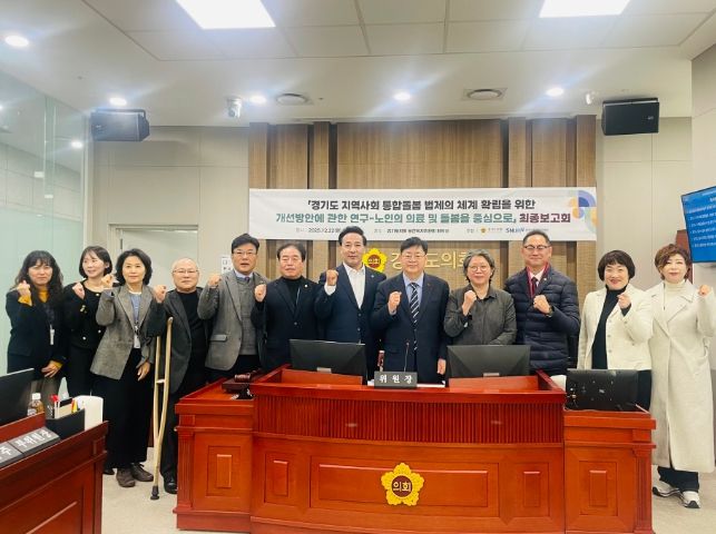 (뉴스폼) 경기도의회 보건복지위원회 연구단체인 보건복지연구회(회장 이선구 위원장, 더불어민주당, 부천2)는 12월 22일, '경기도 지역사회 통합돌봄 체계 확립을 위한 개선방안에 관한 연구'를 주제로 연구용역 최종보고회를 개최했다.