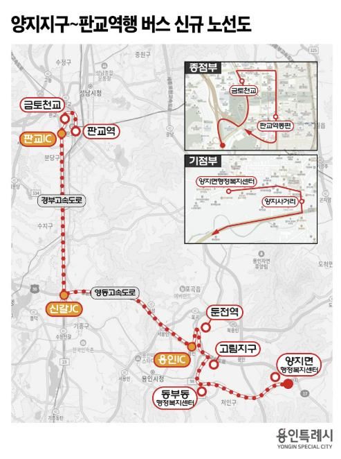 (뉴스폼) 용인 양지지구를 출발해 고림동과 둔전역을 거쳐 성남 판교역까지 운행하는 버스 노선이 확정됐다.