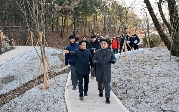 (뉴스폼) 의정부시는 2026년 병오년 새해를 맞아 1월 8일 녹지 인프라 확충을 위한 주요 사업 대상지를 현장 점검했다. 점검 대상지는 ▲장암동 실외정원 ▲용현산업단지 완충녹지 산책로 및 가로숲길 조성 사업지 ▲민락동 감성쉼터 등이다. 이번 점검은 도심 속 쉼터와 실외정원 확충, 안전한 보행환경 조성, 산림 명소 발굴 등 녹지 인프라 조성 사업의 추진 현황을 점검하고, 시민들이 일상에서 녹지 공간을 보다 쉽게 이용할 수 있도록 추진 중인 ‘도시숲 프로젝트’의 사업 방향과 현장 여건을 확인하기 위해 진행됐다.