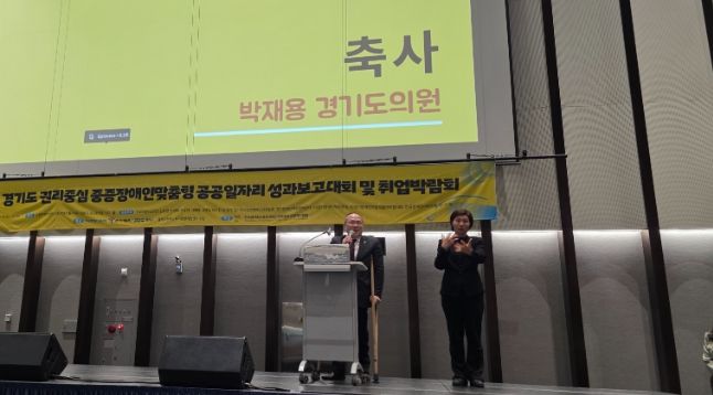 (뉴스폼) 경기도의회 보건복지위원회 박재용 의원(더불어민주당, 비례)은 16일, 수원컨벤션센터에서 열린 ‘2025년 경기도 권리중심 중증장애인맞춤형 공공일자리 성과보고대회 및 취업박람회’에 참석해 축사를 전하고, 중증장애인의 노동권 보장과 권리중심 공공일자리 정책의 지속적인 발전 필요성을 강조했다.
