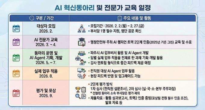 ‘인공지능(AI) 혁신동아리’사업은 직원들의 인공지능(AI) 실무 역량을 강화해 실제 행정 현장에 적용 가능한 인공지능(AI) 활용 사례를 발굴하기 위해 마련됐다.
