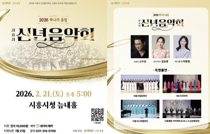 (뉴스폼) 시흥시가 지원하고 (사)한국예술문화단체총연합회 시흥지회에서 주관하는 ‘2026 시흥시 신년음악회- 하나의 울림’이 오는 2월 21일 오후 5시, 시청 늠내홀에서 개최된다.