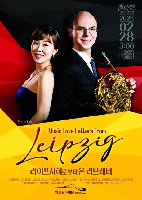 (뉴스폼) 양평문화재단은 오는 28일 오후 3시, 양평문화재단 2층 시어터양평에서 ‘별빛물빛 콘서트 in 양평’ 2월 정기공연으로 클래식 공연 《라이프치히로부터 온 러브레터(Music Love Letters from Leipzig)》를 선보인다.