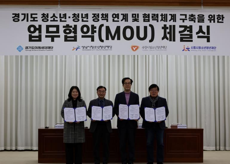 (뉴스폼) 경기도미래세대재단은 12일 옛 경기도청사 신관 4층 대회의실에서 수원·성남·시흥시청소년청년재단과 ‘경기도 청년 정책 연계 및 협력체계 구축 업무협약’을 체결했다.