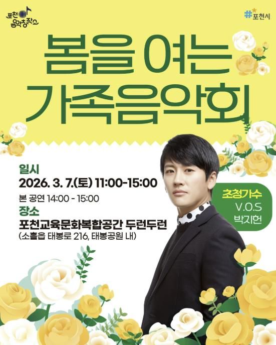(뉴스폼) 포천시는 오는 3월 7일 포천시 교육문화복합공간 두런두런에서 ‘포천음악창작소, 봄을 여는 가족음악회’를 개최한다.