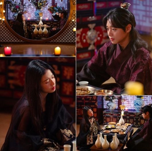 오늘 28일(일) 어스름한 불빛 아래에서 술상을 가운데 두고 마주 앉은 악희와 금화의 모습이 담긴 스틸이 공개됐다.