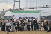 (뉴스폼) 경기도가 지난 8일 반려마루 여주 ‘펫리더스 봉사단’을 결성하고 여주 출렁다리와 신륵사 일대에서 유기동물 입양 홍보 및 환경정화 활동을 진행했다. ‘펫리더스 봉사단’은 경기도 반려마루 여주를 중심으로 도내 시군과 함께 운영하는 반려견 동반 봉사단이다. 경기도 입양주간 슬로건인 ‘Buy bye, 사지말고 입양하세요’를 현장에서 홍보하는 동시에 환경정화 등 사회공헌활동을 함께 실천하기 위해 기획됐다. 봉사단은 반려마루 보호 유기견, 반려견과 반려인, 일반 봉사자 50여 명으로 구성됐다. 이날 봉사활동은 경기도 반려마루와 여주시, 여주세종문화관광재단 공동 주최·주관으로 여주 남한강 출렁다리 옆 강변공원에서 진행됐다. 행사는 펫리더스 봉사단 선서로 시작해 반려마루 여주 예절시범단의 반려견 예절 시범을 관람한 후 신륵사 관광지와 강변공원 일대 환경정화 활동으로 이어졌다. 참가자들은 산책예절과 배변예절 등 올바른 반려문화 홍보도 함께 진행했다. 이강영 경기도 축산동물복지국장은 “경기도가 기획한 펫리더스 봉사단은 기후 활동과 입양 홍보를 함께 실천함으로써 가치에 가치를 더하는 매우 뜻깊은 사례”라며 “봉사단 활동
