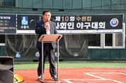 (뉴스폼) 수원특례시의회는 10월 19일 황구지천야구장에서 열린 ‘제10회 수원컵 전국 사회인 야구대회 개회식’에 참석해 선수들을 격려했다. 이번 대회는 경기일보가 주최하고 수원시야구소프트볼협회가 주관했으며, 전국 사회인 44개 팀이 참가해 뜨거운 열정 속에 경기를 펼쳤다. 이날 행사에는 이재식 의장, 김정렬 부의장을 비롯한 오세철 예산결산특별위원장, 김동은 의원이 함께해 선수단을 응원하며, 전국 각지에서 모인 야구 동호인들과 교류의 시간을 가졌다. 이재식 의장은 축사에서 “직장과 가정을 오가며 바쁜 일상 속에서도 야구에 대한 열정으로 최선을 다하는 선수 여러분께 진심 어린 박수를 보낸다”며 “이번 대회가 지역과 세대를 넘어 우정을 나누는 축제가 되길 바란다.”고 말했다.