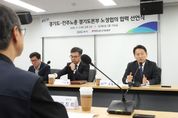 (뉴스폼) 경기도와 민주노총 경기도본부가 5일 경기도청에서 노정 간 신뢰를 바탕으로 한 협력 선언을 했다. 이날 행사에는 고영인 경기도 경제부지사를 비롯해 김도형 경기도 노동국장, 김진희 민주노총 경기도본부장 등이 참석했다. 양측은 지난 1월 노정협의 상견례를 통해 첫 공식 만남을 가진 바 있다. 이번 협력 선언을 통해 경기도와 민노총 경기도본부는 ▲공공부문 노동권 보장 및 확대 ▲노동가치를 우선으로 한 행정 구현 ▲연 2회(상․하반기) 경기도-민노총 경기도본부 간 정례회의 추진 ▲경기도 정책의 공공성 강화 및 폭넓은 대화 창구 구축을 약속했다. 경기도는 노정협의 요구안의 정책 반영 논의를 위해 3월 중 관계부서 실무회의를 열 계획이다. 고영인 경제부지사는 “노동 존중 사회로 나아가는 실질적인 변화를 위해 경기도와 민노총이 협조 체계를 구축하고 지속적인 소통과 협력을 이어나갈 것”이라고 말했다.