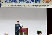 (뉴스폼) 화성특례시의회는 2일, 동탄노인회관에서 열린 ‘동탄노인대학 수료식’에 참석하여 교육과정을 성실히 이수한 어르신들의 뜻깊은 결실을 축하했다. 이날 수료식에는 배정수 의장을 비롯해 이은진·이해남 의원이 참석했고, 노인대학 관계자와 수료 노인 대학생 등 150여 명이 참석해, 한 해 동안 이어진 배움과 소통의 여정을 함께 돌아봤다. 배정수 의장은 “오늘 수료식은 단순한 마침을 넘어서 더 건강하고 존엄한 노년의 삶을 향한 또 하나의 출발점”이라며 “우리 시의원들이 오늘 졸업하는 어머님, 아버님의 든든한 아들이자 딸이 되어 아름다운 동행에 언제나 함께하겠다”고 감사와 축하의 마음을 전했다. 한편, 동탄노인대학은 노년층 건강 증진과 평생학습 기회 확대를 위해 운영되고 있으며, 교양 교육·건강 프로그램·여가 활동 등 다양한 과정이 마련되어 있다. 특히 정서적 교류와 사회적 연결망 형성을 돕는 데 큰 역할을 해 지역사회 노인 복지 증진에 기여했다. 단체 관계자는 “기관 운영 과정에 대한 모니터링 결과 어르신들의 참여율이 높았을 뿐만 아니라 프로그램 만족도 역시 매우 높게 나타났으며, 배움의 즐거움과 벗