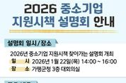 (뉴스폼) 가평군이 관내 중소기업의 경영 안정과 경쟁력 강화를 위해 새해 정부의 지원시책을 한자리에 모아 안내하는 설명회를 연다. 가평군은 관내 중소기업을 대상으로 ‘2026년 중소기업 지원시책 설명회’를 오는 22일 오후 2시 가평군청 3층 대회의실에서 개최한다고 밝혔다. 이번 설명회는 2026년도 중소기업 지원정책을 종합적으로 소개하는 한편 기업 현장의 애로사항을 직접 청취해 정책 수요에 반영하기 위해 마련됐다. 설명회에는 중소벤처기업진흥공단, 기술보증기금, 소상공인진흥공단, 경기중소벤처기업청 등 10개 기관이 참여한다. 설명회 주요 내용은 △중소기업 자금 및 금융 지원 시책 △소상공인 지원 정책 △수출‧판로 확대 지원사업 △연구개발 및 기술사업화 지원 등으로, 기업 운영에 실질적인 도움이 되는 정책 중심으로 구성됐다. 특히 각 분야별로 전문가가 참여해 지원 시책 설명회와 동시에 기업별 맞춤형 현장 상담을 병행해 운영한다. 이에 따라 참가 기업들이 평소 겪고 있던 경영, 자금, 수출, 기술 관련 애로사항을 현장에서 직접 상담받을 수 있도록 했다. 군 관계자는 “관내 중소기업 운영자들이 이번 설명회에 적극 참