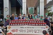 (뉴스폼) 오산시 세마동 새마을부녀회는 지난 17일 독거노인, 저소득 가정, 차상위 계층 등 관내 취약계층을 위한 ‘사랑의 고추장 담그기’ 행사를 개최했다고 밝혔다. 이번 행사는 세마동 새마을부녀회를 중심으로 새마을지도자협의회, 통장협의회, 지역사회보장협의체 등 세마동의 여러 단체가 함께 참여해 이웃사랑의 의미를 더했다. 이날 정성껏 담근 고추장은 취약계층 60여 세대에 전달될 예정이다. 신정순 세마동 새마을부녀회장은 “회원들이 정성을 담아 만든 고추장이 어려운 이웃들에게 작은 힘이 되길 바란다”며, “앞으로도 꾸준한 봉사활동을 통해 따뜻한 지역공동체를 만들어가겠다”고 전했다. 유미정 세마동장은 “매년 이웃사랑 실천을 위해 적극 참여해 주시는 새마을부녀회 회원분들께 깊이 감사드린다”며, “세마동 행정복지센터에서도 소외된 이웃이 없도록 지역 나눔 문화를 지속적으로 지원하고 확산해 나가겠다”고 말했다. 한편, 세마동 새마을부녀회는 매년 ‘사랑의 고추장 담그기’, 목욕 봉사, 김장 나눔 행사 등 다양한 활동을 통해 지역사회 나눔과 이웃사랑 실천에 앞장서고 있다.