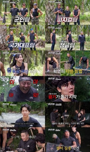 ‘국가대표 팀’과 맞붙은 ‘정글 팀’은 카메라 감독에게 날아갈 만큼 강력한 ‘장어 패대기’로 장어를 손쉽게 붙잡아 감탄을 선사했다. ‘정글 팀’의 꿀팁을 본 ‘피지컬 팀’과 ‘군인 팀’은 던지는 ‘피지컬 팀’과 훔치는 ‘군인 팀’으로 마치 야구장 같은 캐치·플라이를 선보였다.