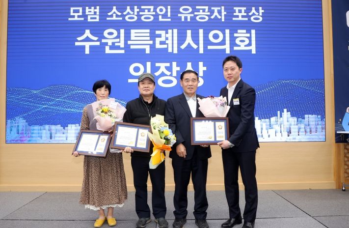 이날 수여식에는 이재식 의장이 참석하여 모범 소상공인에 대한 수원특례시의회의장상 포상을 실시했다.