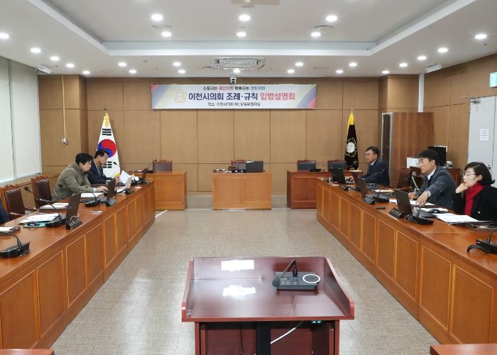 (뉴스폼) 이천시의회가 18일 상임위원회실에서 의원발의 조례안 14건에 대해 입법설명회를 개최했다.