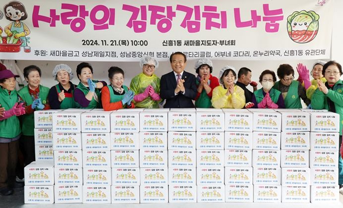 (뉴스폼) 성남시의회 이덕수 의장과 21일 신흥1동 행정복지센터에서 열린 신흥1동 김장담그기 행사에 참석했다.