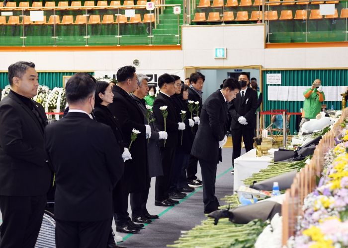 무안공항에 마련된 합동분향소에는 참사 희생자 179명의 위패와 영정이 모셔져 있는 가운데, 배정수 의장과 의원들은 헌화와 묵념으로 애도를 표했다.
