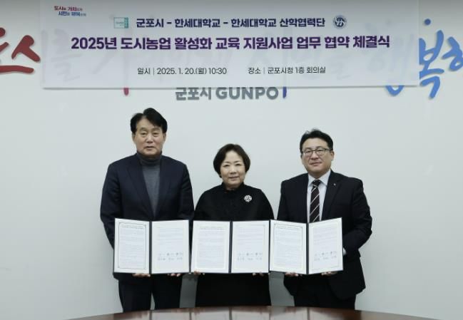 (뉴스폼) 군포시는 지난 20일 한세대학교 및 한세대학교 산학협력단과 군포시 도시농업 활성화 교육 지원을 위한 업무협약을 체결했다고 밝혔다.