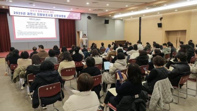 (뉴스폼) 과천시는 지난 21일, 시청 대강당에서 ‘2025년 지방보조사업 시민설명회’를 개최했다. 이날 설명회에는 80여 명의 시민이 참석하여, 지방보조사업의 중점 추진 사항과 주요 보조사업의 일정, 내용 등을 공유했다.