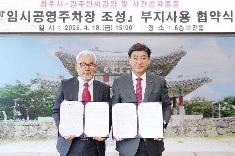 (뉴스폼) 광주시는 18일 시청 비전홀에서 광주 안씨 광양(사간)공파 종중과 중대동 임시 공영주차장 조성을 위한 부지사용 협약식을 체결했다.